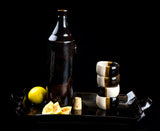 Botella Mezcalera Contemporánea de Alta Temperatura con dos Coquitos